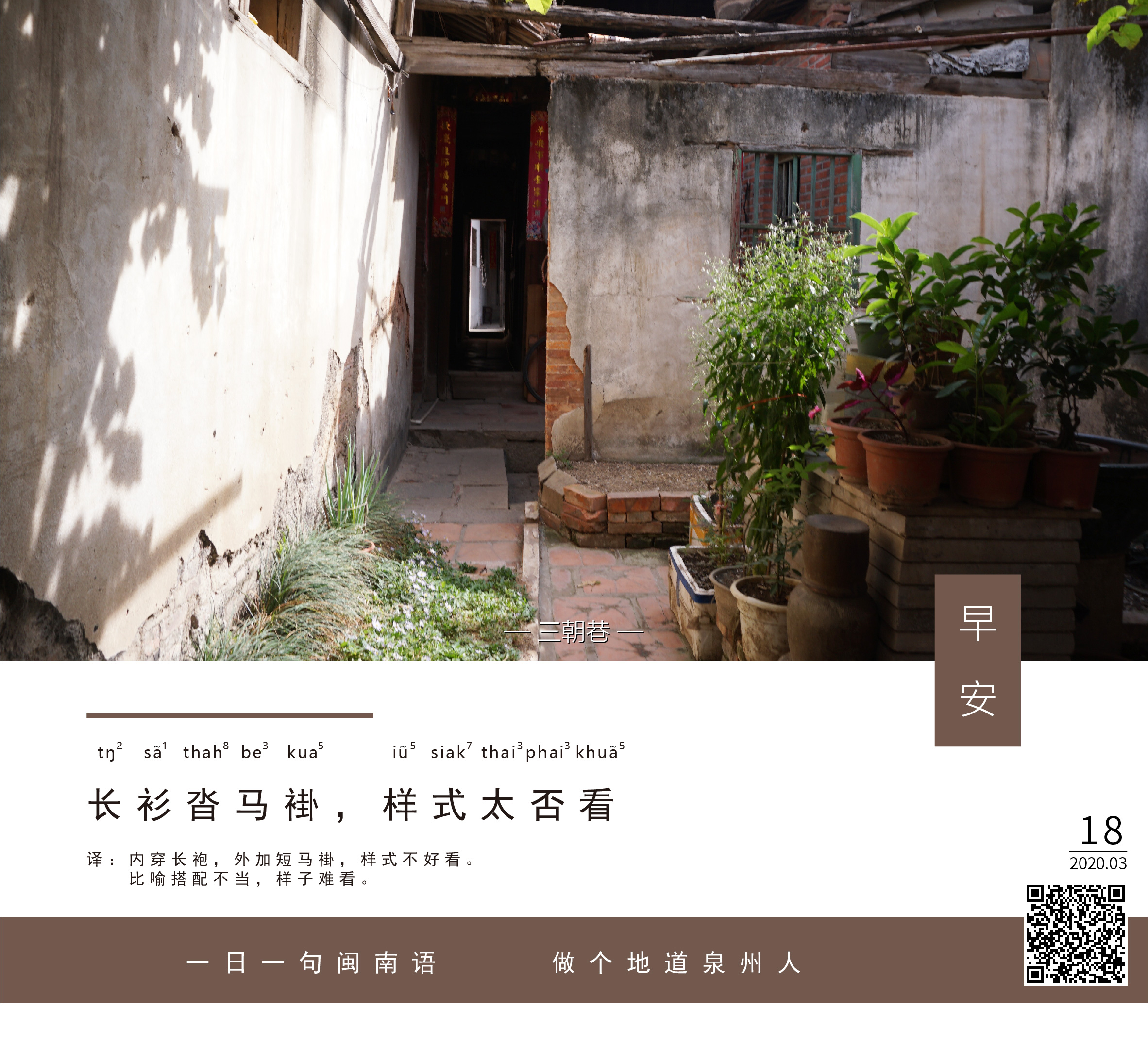 译:内穿长袍,外加短马褂,样式不好看。比喻搭配不当,样子难看。