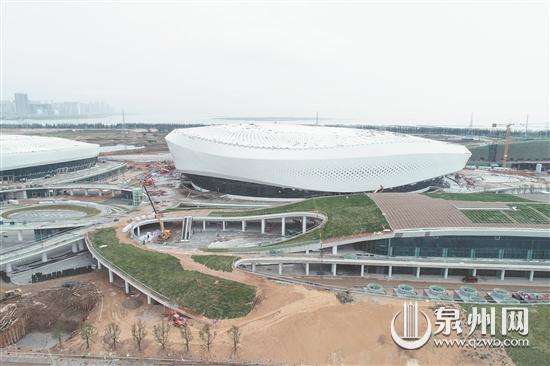 日前,在晋江市第二体育中心施工现场,1000多名工人忙碌在各个角落,施工场面热火朝天,项目建设进入冲刺收尾阶段。据介绍,目前该体育中心体育馆、游泳馆、训练馆主体结构建设已完成,室内装饰装修、机电安装基本完成,外装饰面施工总体完成进度超过95%,预计于月底初步验收。运动员生活区主体结构封顶、现正全面转入室内装饰装修阶段,预计今年6月底竣工验收。 (许雅玲 吴炜韬 摄)