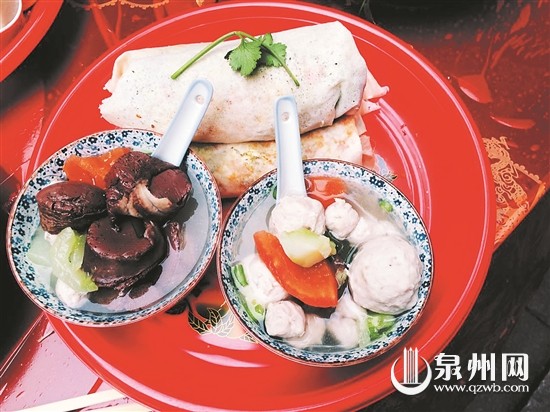 “唐宋时期,因中原人们南下迁徙,春饼随之流入了闽南地区,成为闽南润饼菜的前身。”泉州民俗专家傅孙义介绍说,随着中原人定居泉州后,润饼菜这一传统食物也落地生根,在清明时节,便成为家家户户祭祖的必备祭品。傅孙义说,由于其白皮红馅的特征,也被赋予了“包金包银”的招财寓意,深受泉州人喜爱。如今除了清明节,许多老泉州人在除夕也会做着吃。而从现代营养学来看,润饼菜荤素搭配得当,营养均衡,不失为一道既美味又营养的美食。
