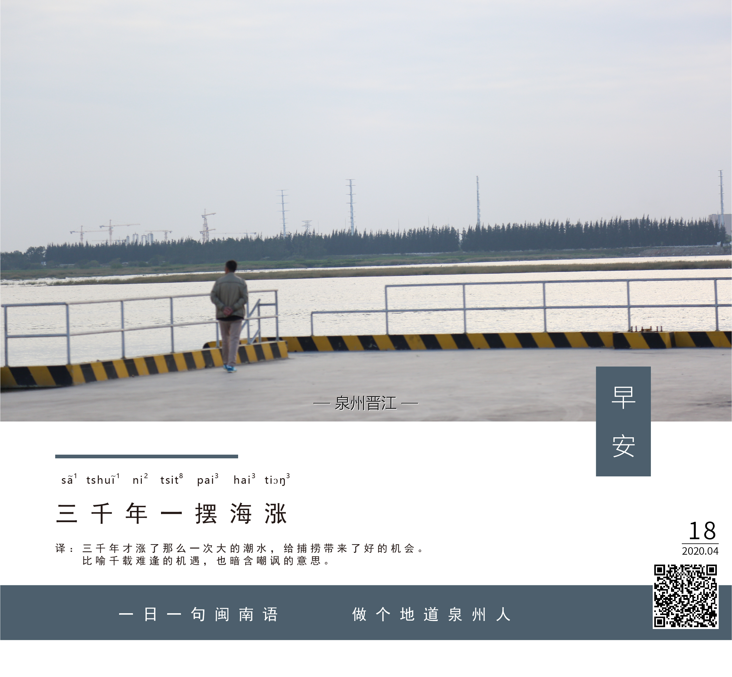 译:三千年才涨了那么一次大的潮水,给捕捞带来了好的机会。比喻千载难逢的机遇,也暗含嘲讽的意思。