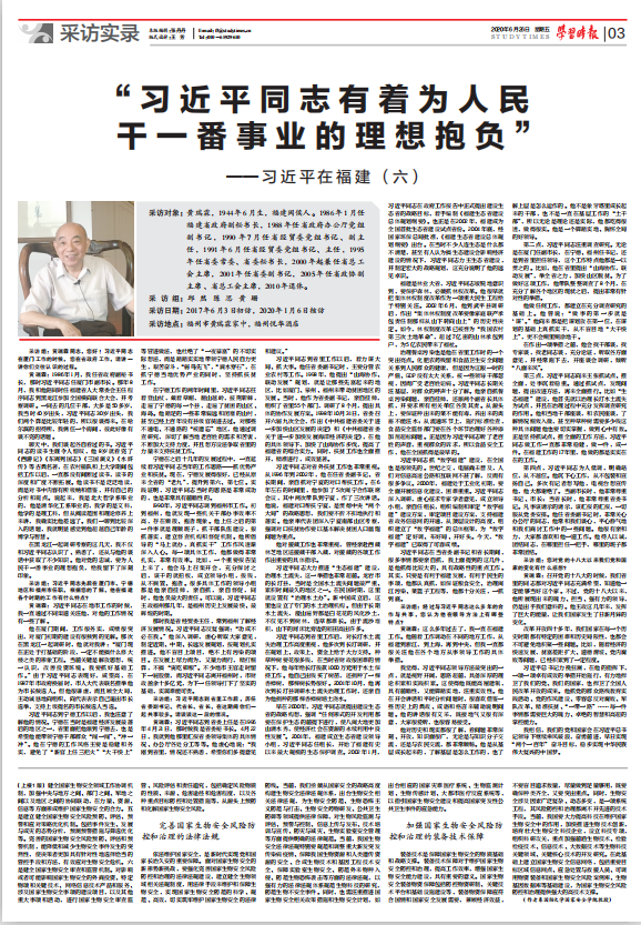 黄瑞霖:习近平同志在地市工作的时候,我一直通过不同渠道关注他,对他的工作情况有一些了解。