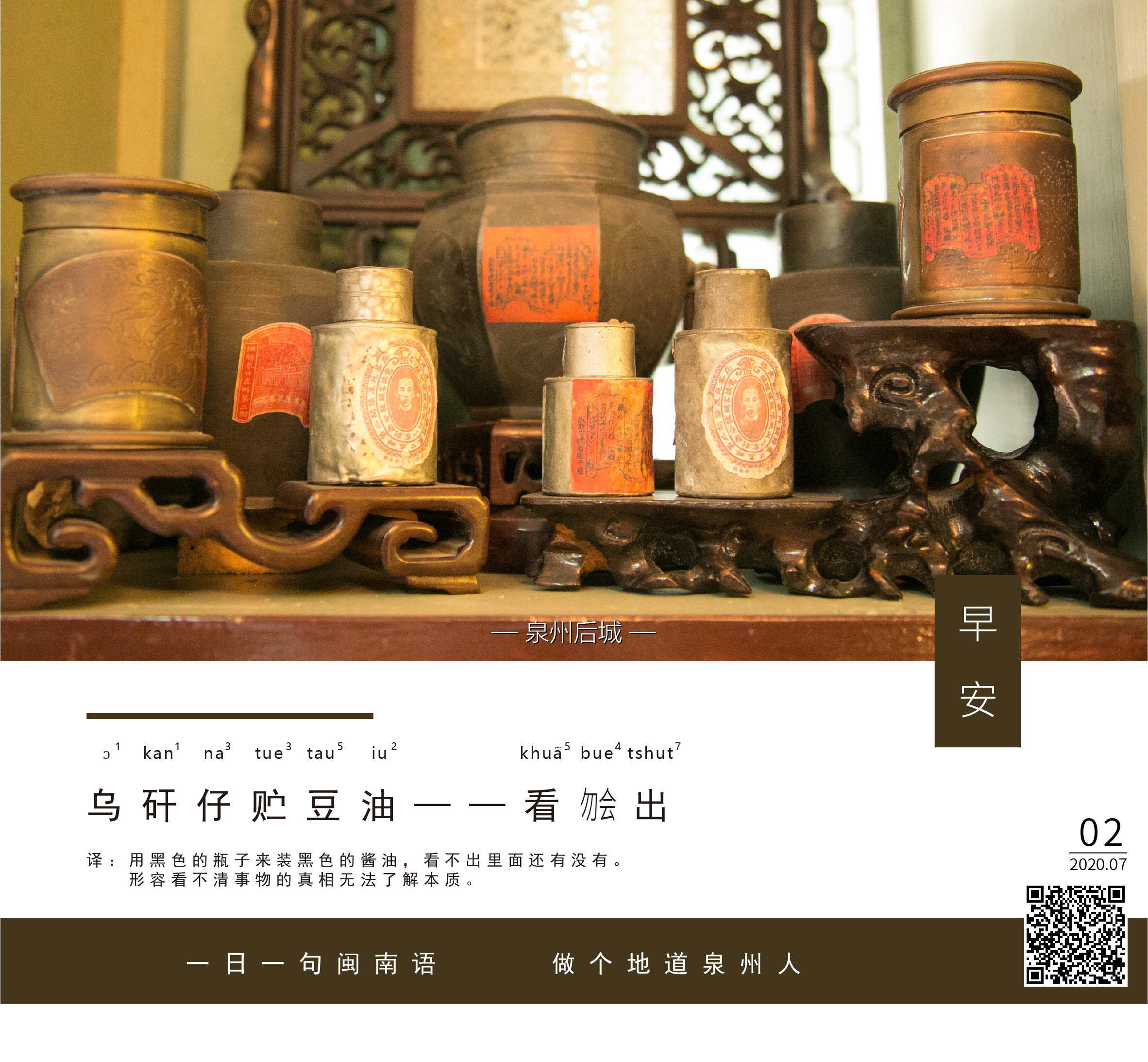 译:用黑色的瓶子来装黑色的酱油,看不出里面还有没有。形容看不清事物的真相无法了解本质。