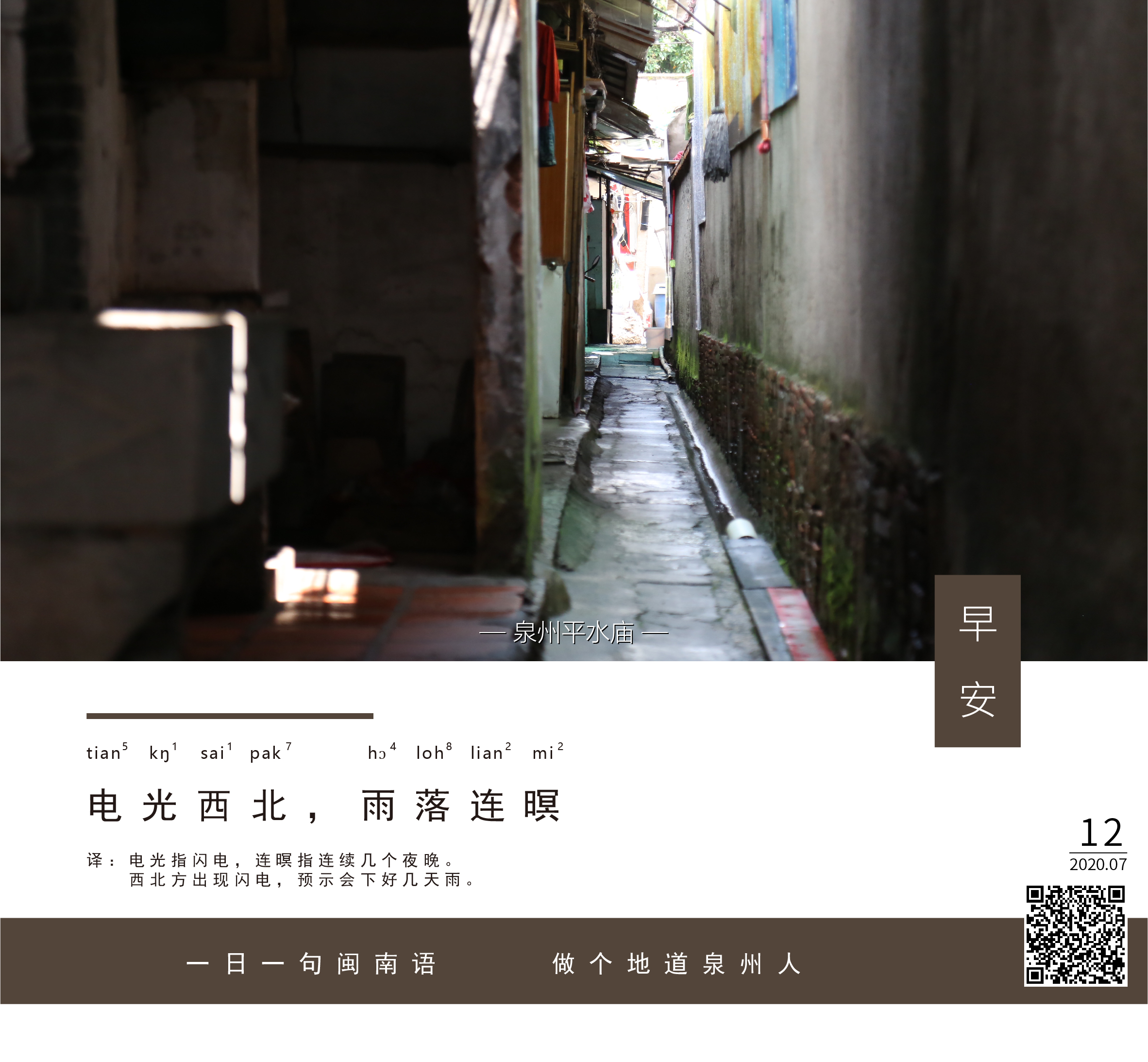译:电光指闪电,连暝指连续几个夜晚。西北方出现闪电,预示会下好几天雨。