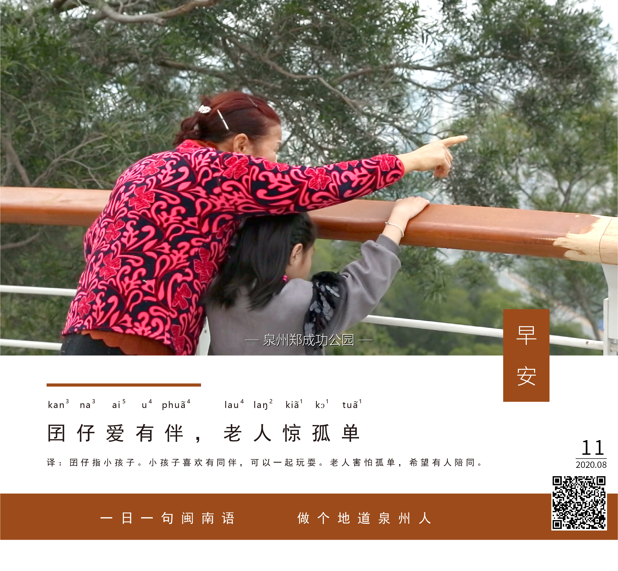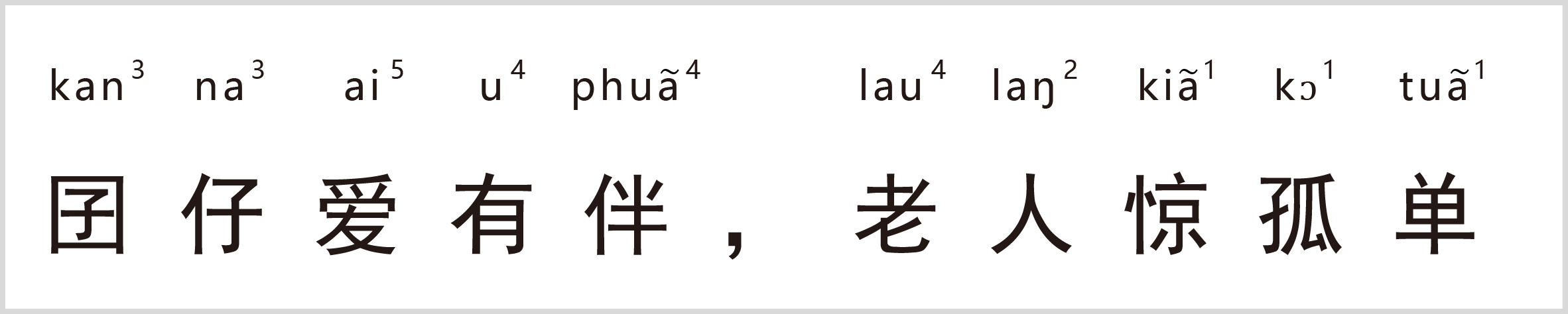 译:囝仔指小孩子。小孩子喜欢有同伴,可以一起玩耍。老人害怕孤单,希望有人陪同。