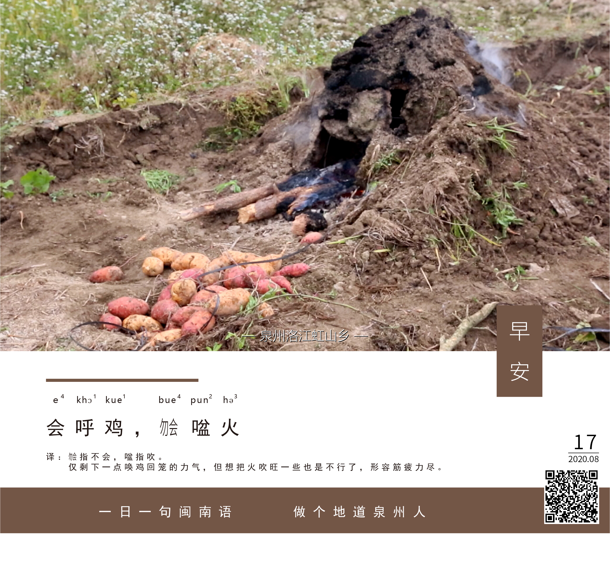 译:勿会指不会,㖹指吹。仅剩下一点唤鸡回笼的力气,但想把火吹旺一些也是不行了,形容筋疲力尽。