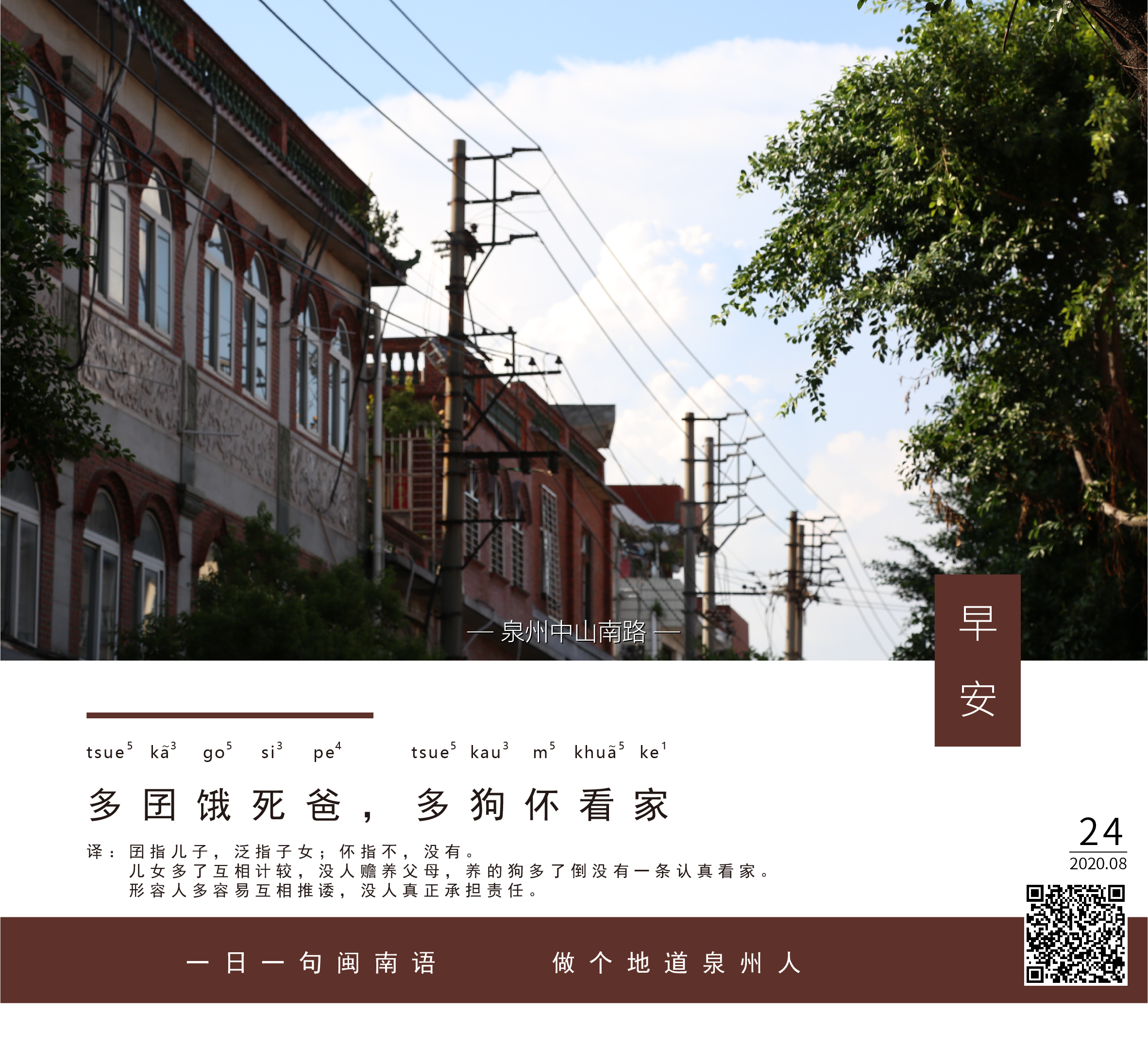 译:囝指儿子,泛指子女;伓指不,没有。儿女多了互相计较,没人赡养父母,养的狗多了倒没有一条认真看家。形容人多容易互相推诿,没人真正承担责任。