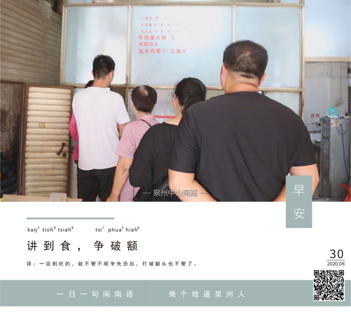 译:一说到吃的,就不管不顾争先恐后,打破额头也不管了。