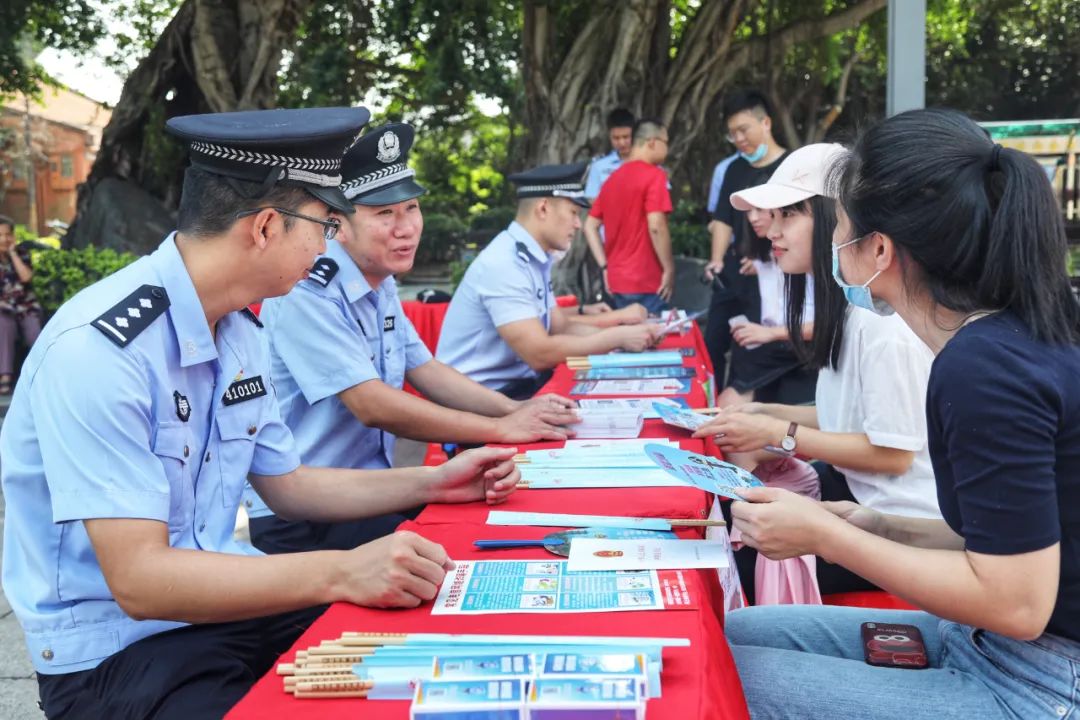 在活动现场,民警结合近年来发生的涉及网络安全、电信诈骗等典型案例,形象生动的向过往群众介绍网络安全的重要性,并向过往群众分发宣传单等物品。