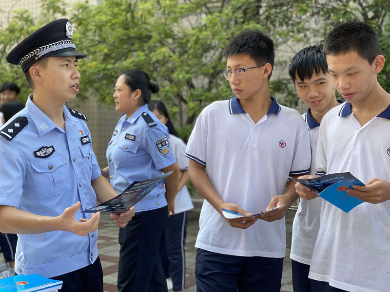 图为南安市委网信办、网安大队在南安市职业中专学校开展网络安全宣传 。林明伟/摄