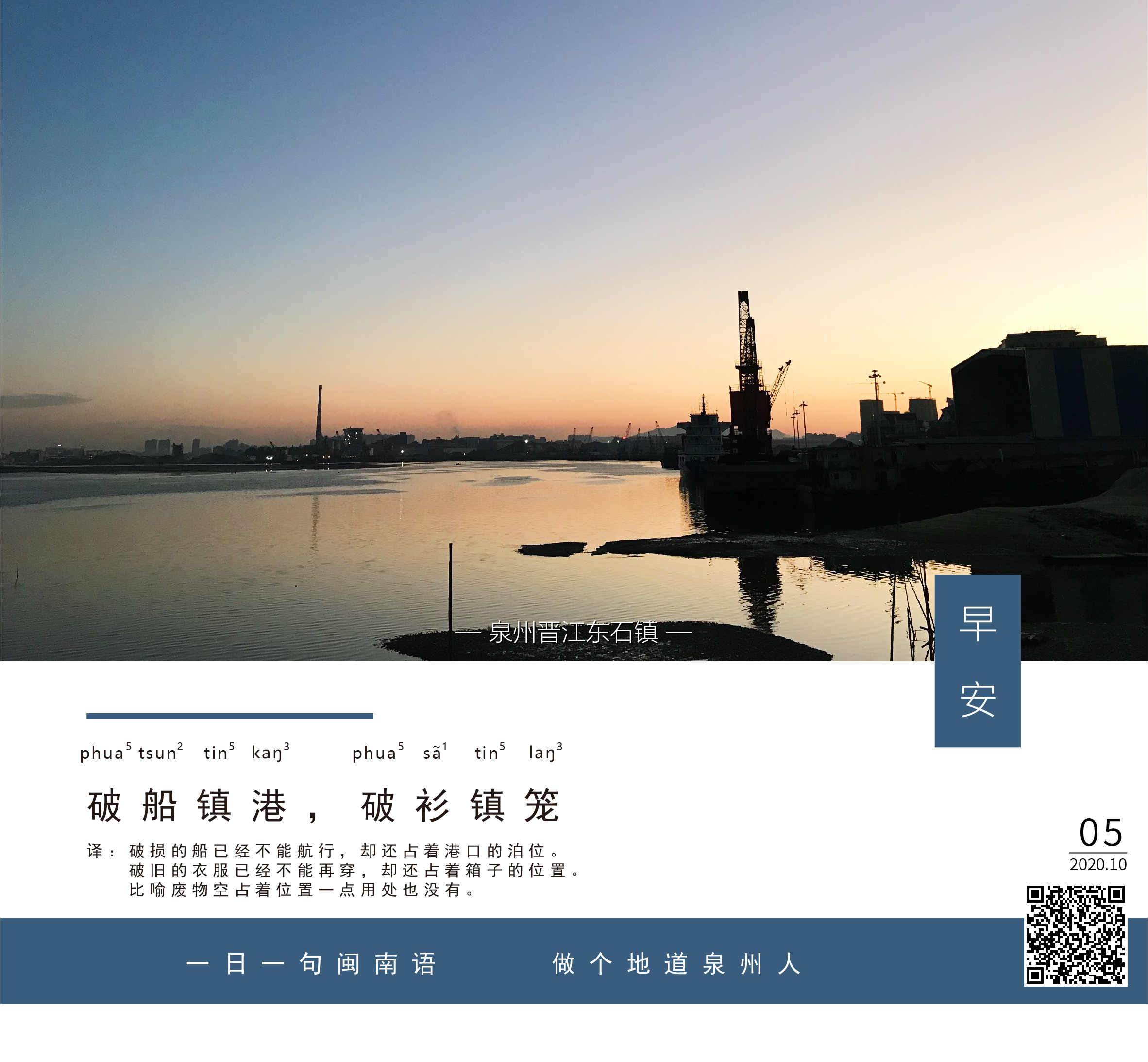 译:破损的船已经不能航行,却还占着港口的泊位。破旧的衣服已经不能再穿,却还占着箱子的位置。比喻废物空占着位置一点用处也没有。