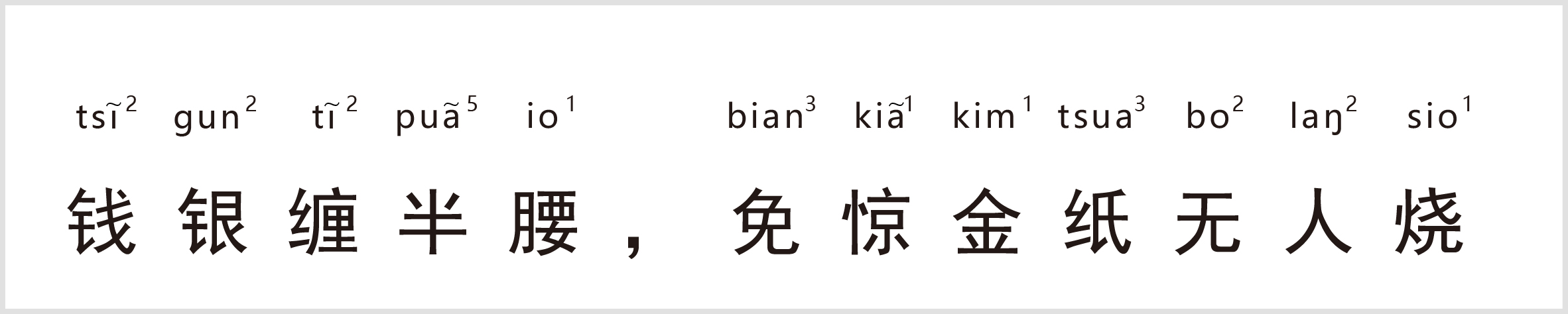 译:免惊指别怕;银纸指纸钱。只要有钱,就一定有人对你好,甚至死了也不担心没人烧纸钱。