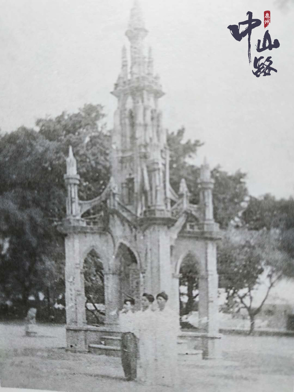 中山北路 中山公园内造型独特的七十二烈士纪念碑,曾是许多人留影的地方,不远处有一尊石狮。