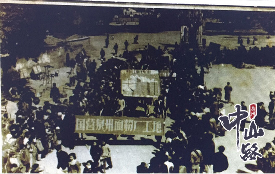 上世纪50年代,国营泉州面粉厂员工在中山公园举行庆典活动。(叶贻雄 收藏)