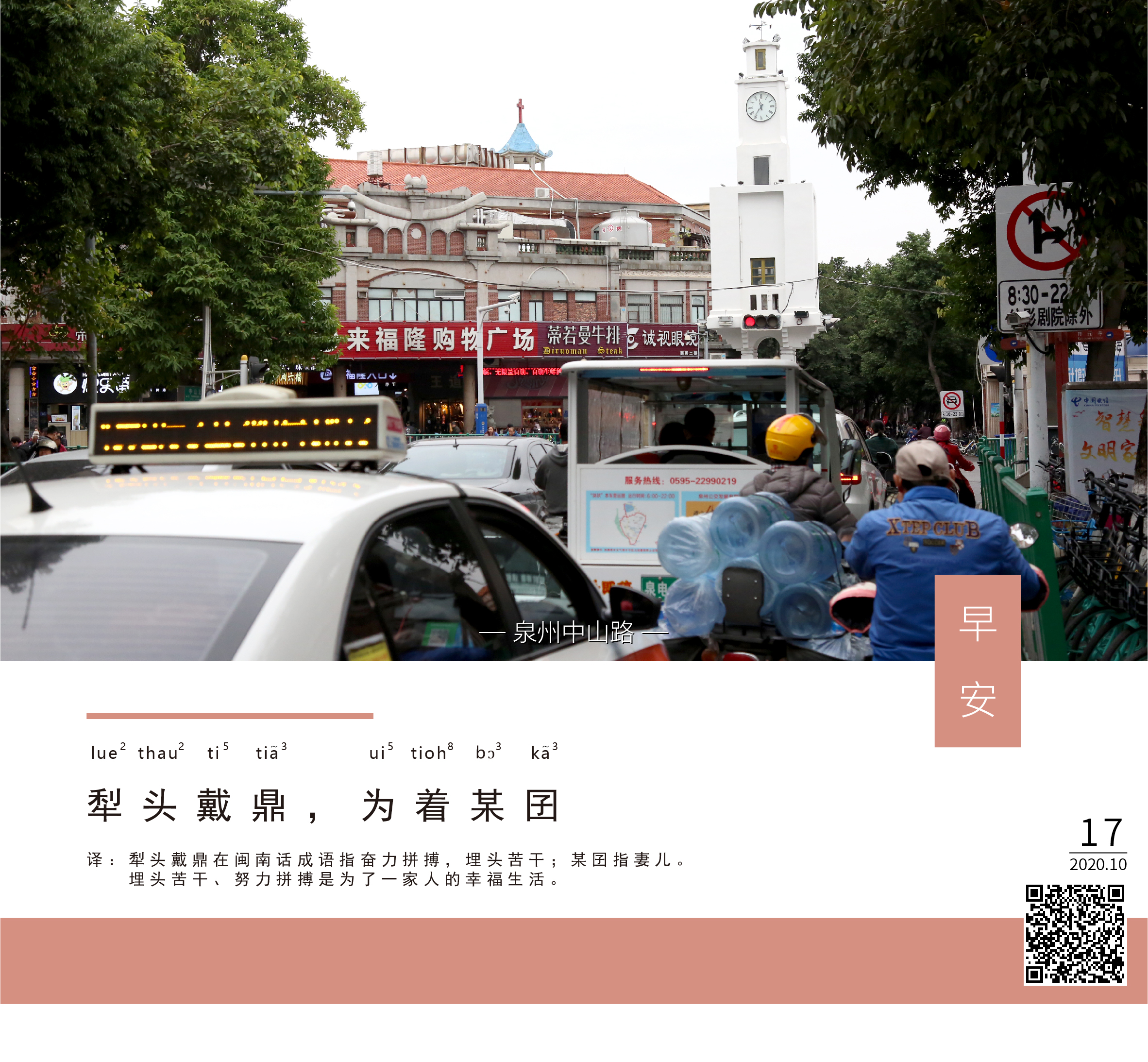 译:犁头戴鼎在闽南话成语指奋力拼搏,埋头苦干;某囝指妻儿。埋头苦干、努力拼搏是为了一家人的幸福生活。