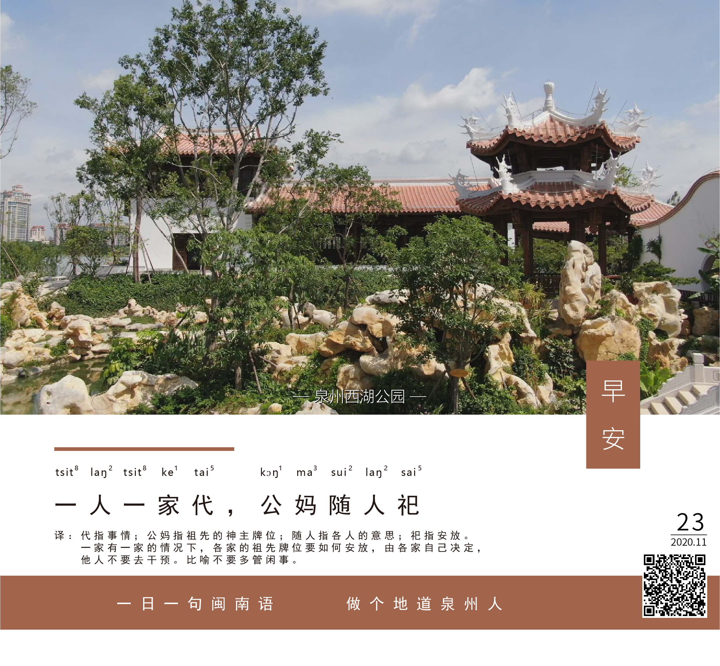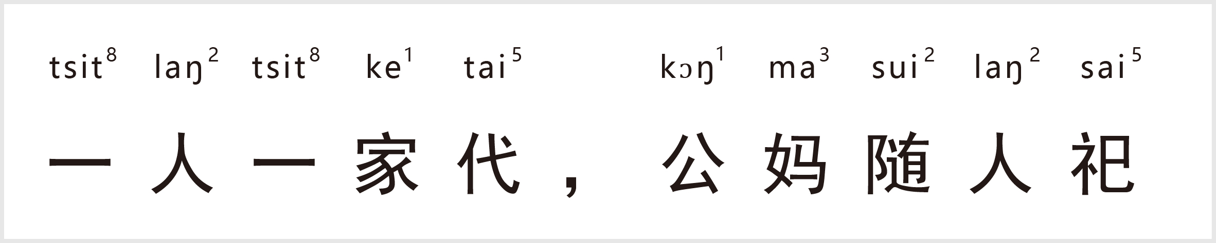 译:代指事情;公妈指祖先的神主牌位;随人指各人的意思;祀指安放。一家有一家的情况下,各家的祖先牌位要如何安放,由各家自己决定,他人不要去干预。比喻不要多管闲事。