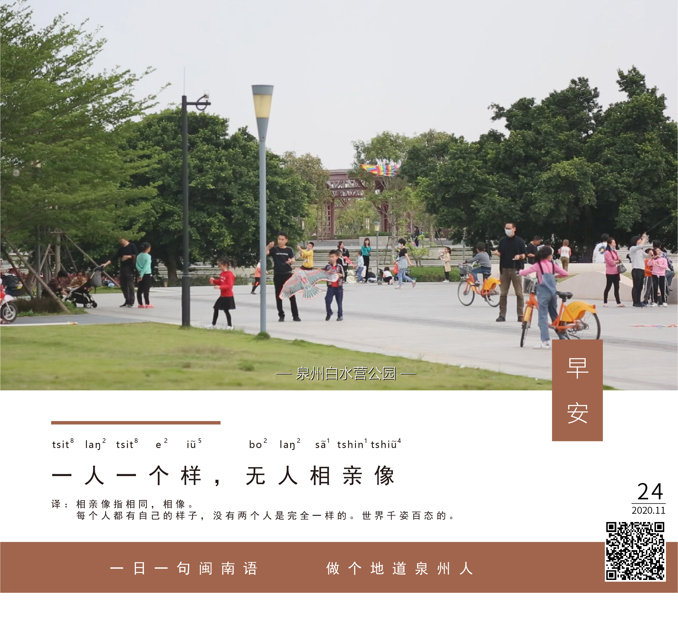 译:相亲像指相同,相像。每个人都有自己的样子,没有两个人是完全一样的。世界是千姿百态的。