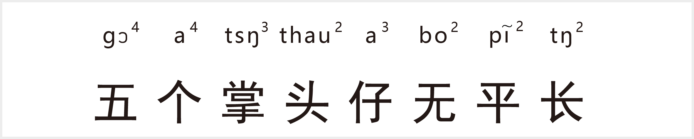 译:掌头仔指手指头。五个手指头是不一样长的,形容事物不可能绝对平均或者相同。