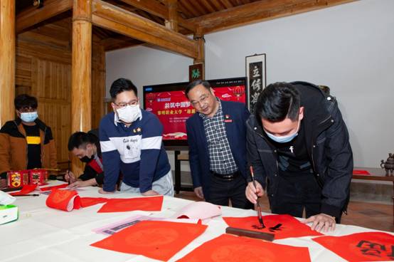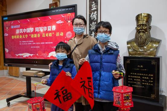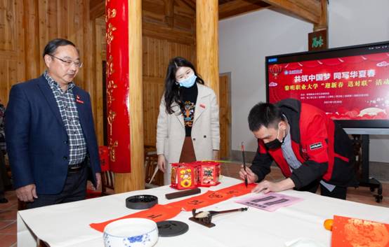为贯彻落实习近平总书记2021年新年贺词精神,献礼中国共产党百年华诞,1月30日,由黎明职业大学工会委员会主办,黎明职业大学各二级工会、宣传部、人事处、保卫处、校团委、国际交流学院承办的“共筑中国梦 同写华夏春”2021年“迎新春 送对联”活动在黎明职业大学宝觉书院举行,校党委副书记、工会主席庄一民,校纪委书记林长红,校工会副主席李琳、保卫处处长黄夏明、宣传部副部长(主持)陈宝色、人事处副处长林青红、国际交流学院副院长黄俊荣、中国书法家协会会员洪光辉、曾俊鸿,福建省书法家协会会员许长锋出席活动,我校部分留泉过年教工及其子女、退休教工以及来自印度、越南、缅甸的境外学生参加了活动。