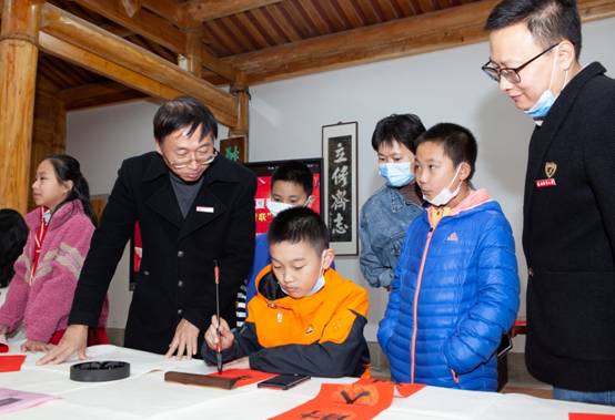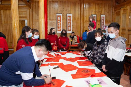 活动现场还组织了书法教学互动。在场教工及其子女们、留学生们或认真观摩,或求教探讨,或亲自上阵挥毫体验,活动现场欢声笑语,热闹非凡。书法家们认真指导着握笔姿势、下笔轻重,讲解着字形结构布局等,求教者们仔细聆听,反复揣摩尝试,认真书写。“黎明双喜”“五福临门”“新春福旺”“万事如意”“祝家里平安”,通过书写,留学生们纷纷表达了对远在千里的家人的思念和祝福,让大家深切体会了人类命运共同体团结抗疫的重要意义。不同形态的福禄寿则是留泉过年的教工子女们对新年新气象最真挚淳朴的期盼。