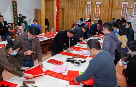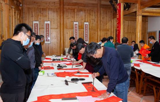 活动现场人头攒动,喜气洋洋。“国泰民安逢盛世牛气冲天 火树银花醉良宵莺歌动地”“牛来岁有余 鼠去春无限”“旭日高悬致富门 新春喜作黄牛颂”“牛随吉瑞下天庭 鼠报平安归玉宇”“天增岁月人增寿 春满乾坤福满楼”“百世岁月当代好 千古江山今朝新”“和顺一门有百福 平安二字值千金”“喜居宝地千年旺 福照家门万事兴”一副副意寓吉祥美好的对联在书法家们的挥毫洒墨下跃然纸上,一横一竖、一撇一捺表达了大家同舟共济、早日驱散疫情阴霾的坚定信心,一声声关怀祝福道出了大家对当下美好生活的感恩和新一年山河锦绣、国泰民安的祈福。