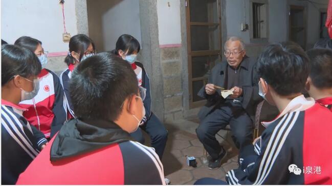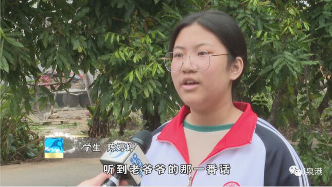 学生 陈婷婷:“听到老爷爷的那一番话,我才知道我们家乡有这样的故事, 我才知道抗争时期的那些战士那么辛苦,我们现在的幸福都是用他们那些时候的牺牲换来的,我会学习那些战士们的精神,好好学习。”