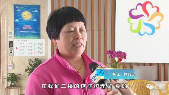 泉港中心敬老院院长 洪明慧:“要跟他们多沟通,多做活动的同时,还要每天关心他们的心理,因为他们很多家里面子女很忙,没有空来探望,所以他们会想到家里,我们这边要丰富一些娱乐活动,饮食方面要让他们吃得满意,要让他们喜欢上养老院,所以护理员要在这一方面付出的更多一点。”