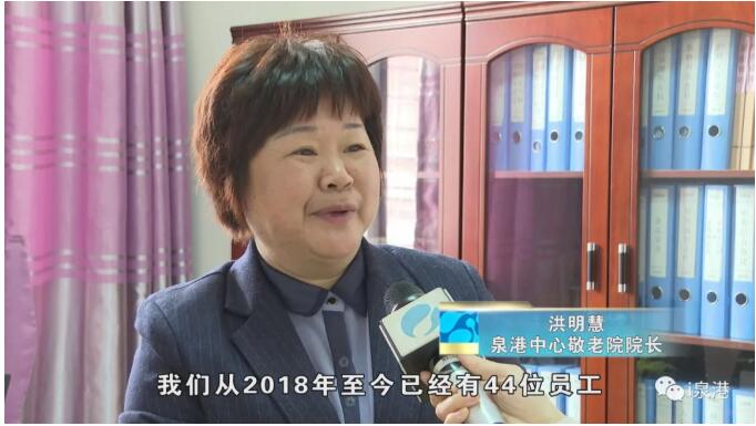 泉港中心敬老院院长 洪明慧:“我们从2018年至今已经有44位员工,女性占了38位,这些女性的年龄大概都在45到50岁左右。”