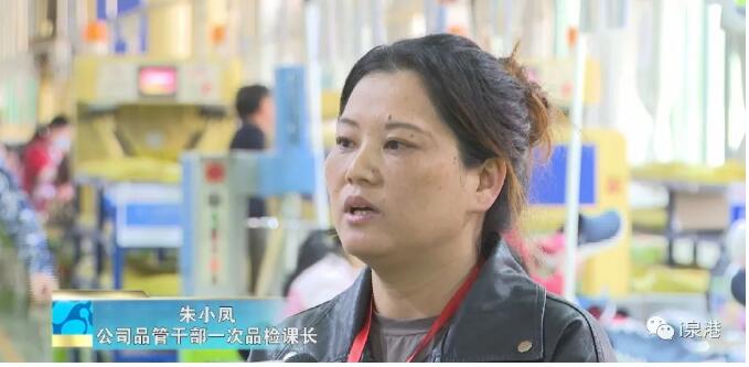 公司品管干部一次品检课长 朱小凤:“公司平时也给我们开展一些工作上的技能培训,不管是遇到什么困难,我都希望我们能好好地把工作做好,带动部门的所有女性成员能更好地投入到工作。”