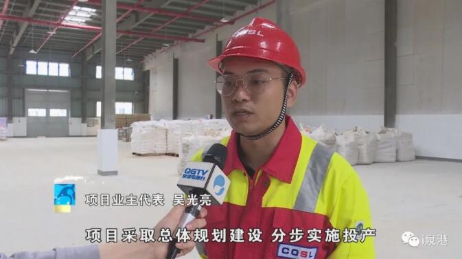项目业主代表 吴光亮:“我们生产的产品主要应用于海上油田钻井和泥浆。主要是中海油内部自产自销,有30%(产品)是出口到国外进行出口创汇。本项目在设计中,对‘三废’采取了完善的处理措施,在生产过程中对周围环境不会产生污染,满足国家和地方有关排放标准的规定。”