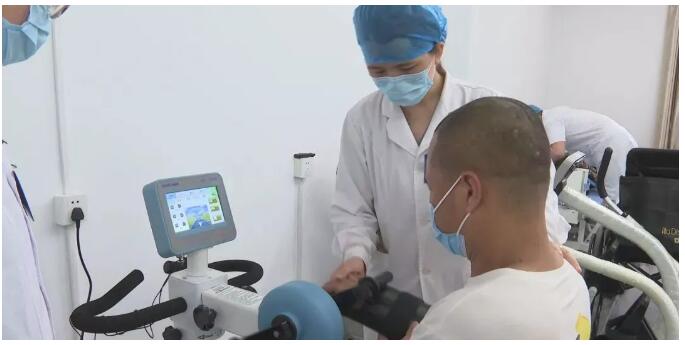 走进宽敞明亮的康复治疗中心,记者看到,许多患者已前来接受康复诊疗。中心内配备了许多康复诊疗设备,患者在医务人员指导下,根据自身情况选择相应设备进行康复治疗。