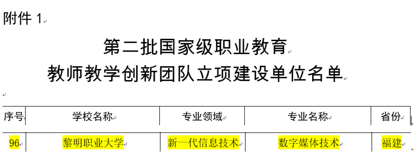 7月26日,教育部发布《教育部教师工作司关于第二批国家级职业教育教师教学创新团队遴选结果的公示》,黎明职业大学数字媒体技术专业获国家级职业教育教师教学创新团队立项。