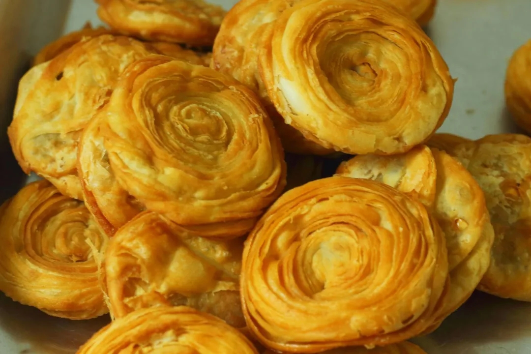 形似“蜗牛”的油酥饼,这是许多人小时候的爆款零食。油酥饼外表金黄、脆而不碎、油而不腻。闻之香味悠远,令人垂涎欲滴;食之醇香盈齿,心满意足。泉港金桃油酥饼是泉港传统名小吃,历经南埔镇沙格村王金桃一家三代人的传承和改进,至今已有近百年历史。