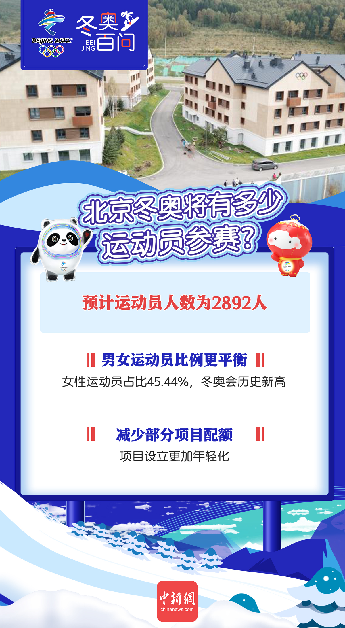 相比2018年平昌冬奥会,北京冬奥会的参赛运动员总数减少41人,为2892人。