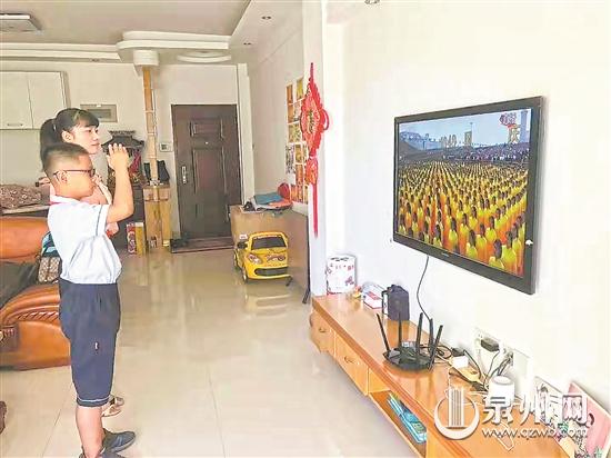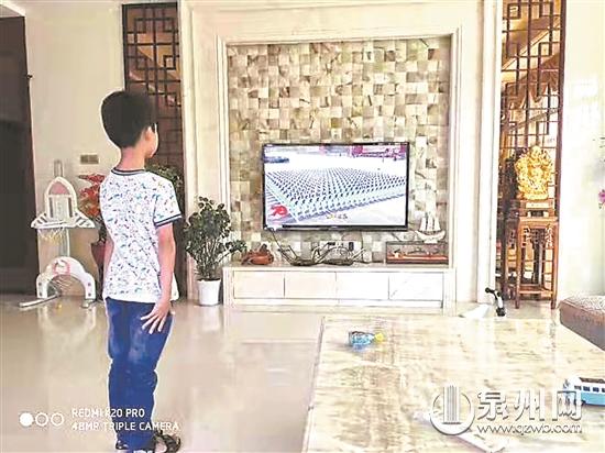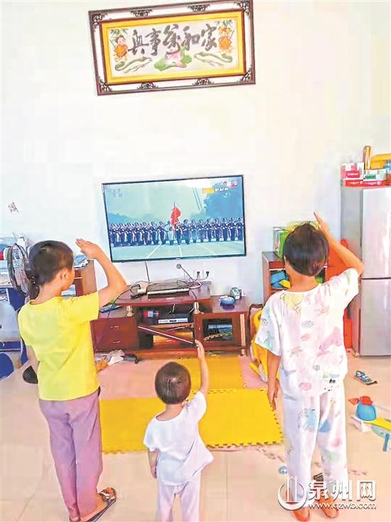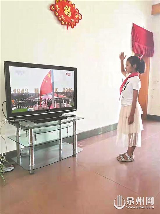 泉港区益海实验小学的学生无论何时听到国歌响起,马上停下活动,立正行礼。(部分图片由学生家长提供)