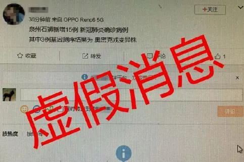 1月19日,泉州网警辟谣:谢某为了博人眼球,在社交平台上编造、散布该虚假消息。