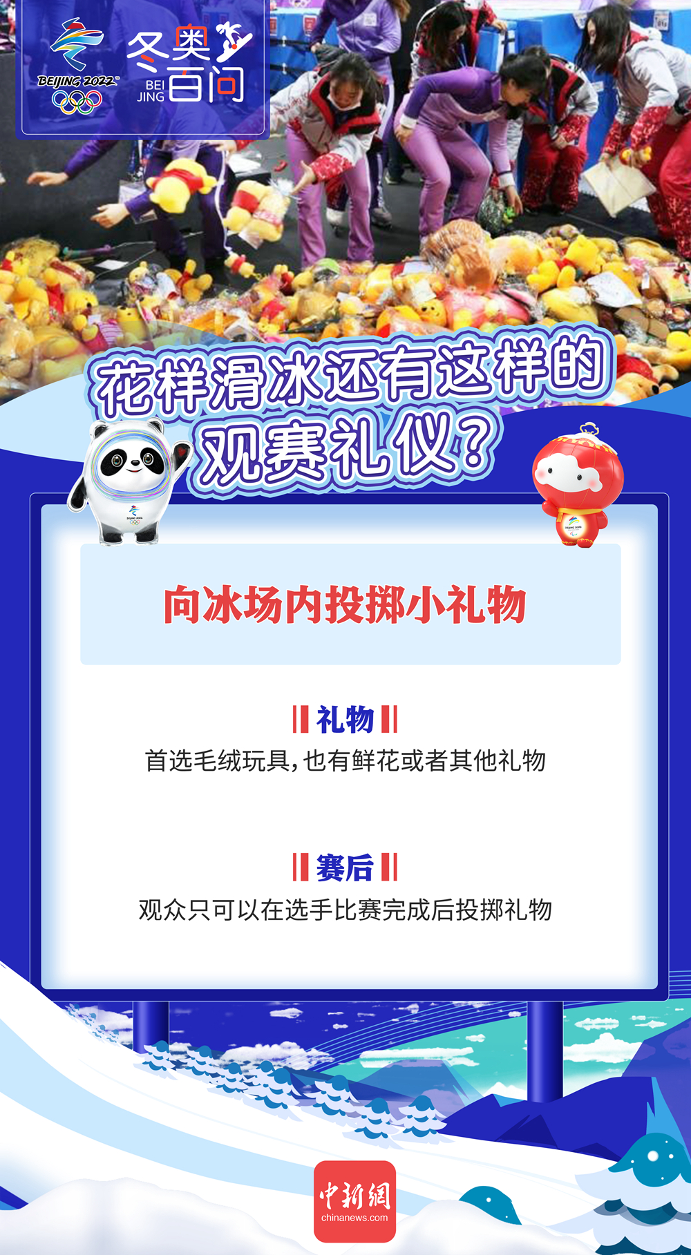 对于哪些礼物可以被投掷进场,也有一定要求。一般毛绒玩具、包装好的鲜花等比较常见,这是因为这些礼物不会对冰面造成伤害,进而影响后续选手的发挥与安全。反之,则有可能造成意外。