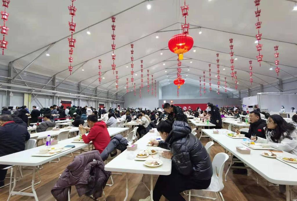 餐饮保障方面,当天中午11时,运动员餐厅正式开餐。餐厅内部悬挂的红灯笼、张贴的冬奥题材剪纸等中国风装饰得到各代表团成员好评。