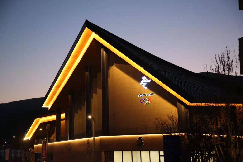 2021年12月21日,张家口冬奥村内建筑全部开灯迎接测试。新华社记者杨帆摄