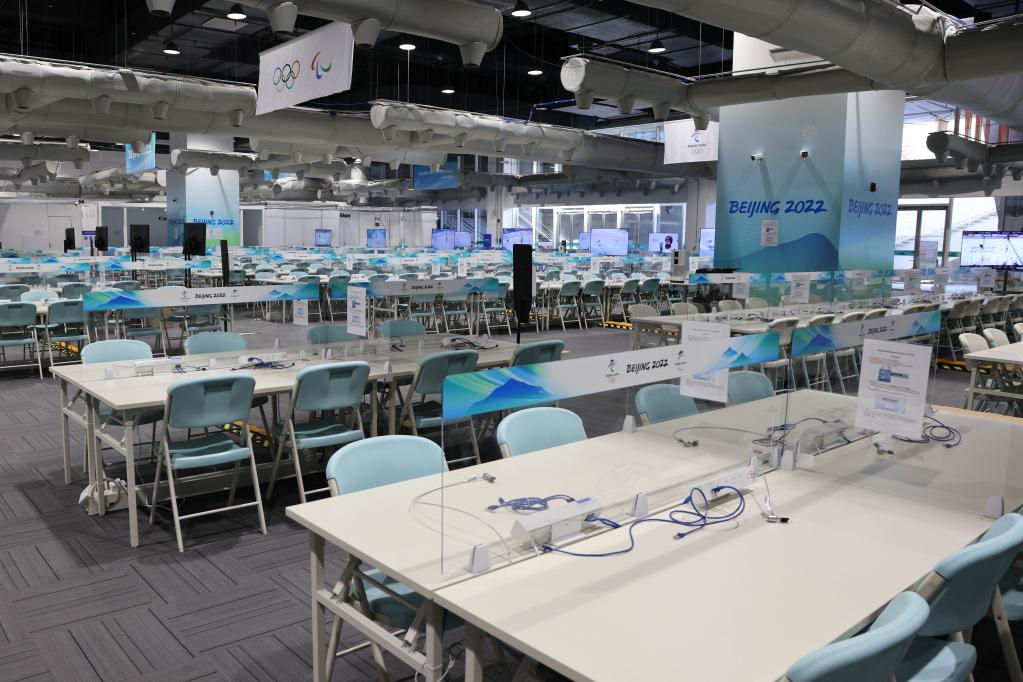 图为1月10日在主媒体中心内拍摄的媒体工作间。新华社记者徐子鉴摄