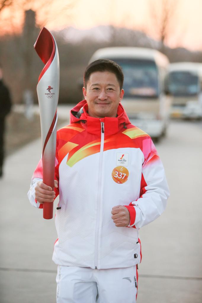 2月2日,火炬手吴京在火炬传递中。新华社记者孟晨光摄