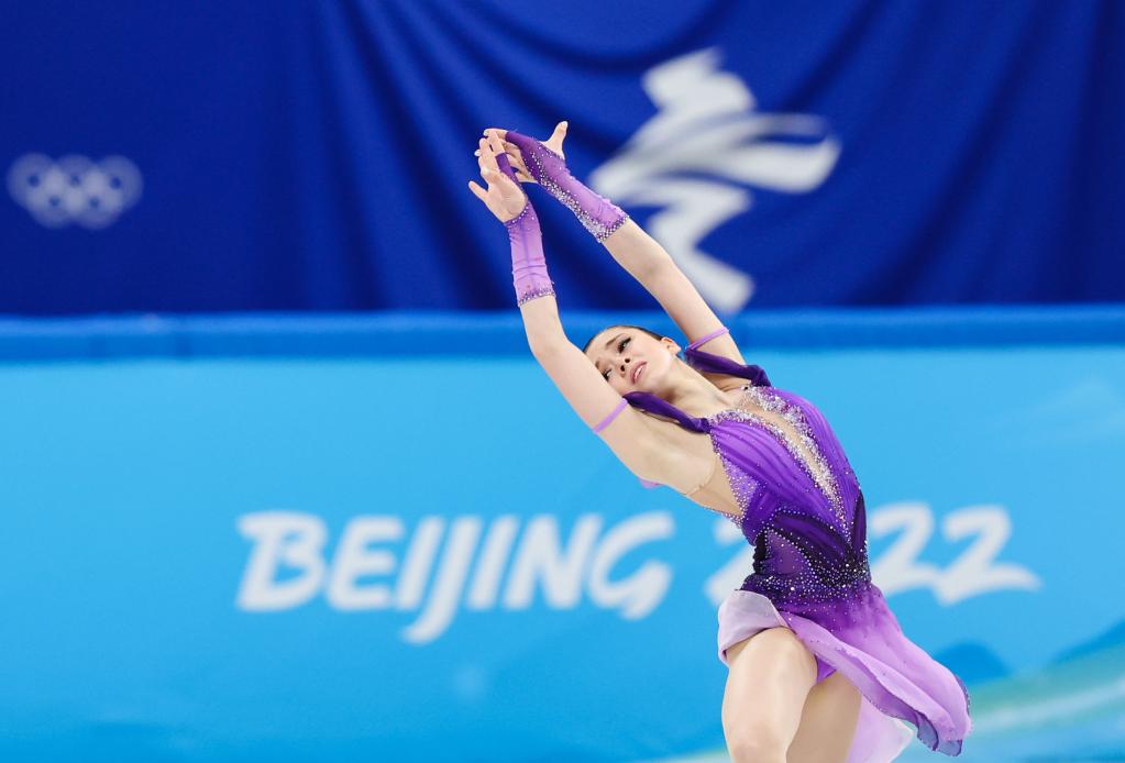 2月15日,俄罗斯奥委会选手卡米拉·瓦利耶娃在北京冬奥会花样滑冰女子单人滑短节目比赛中。新华社记者曹灿摄