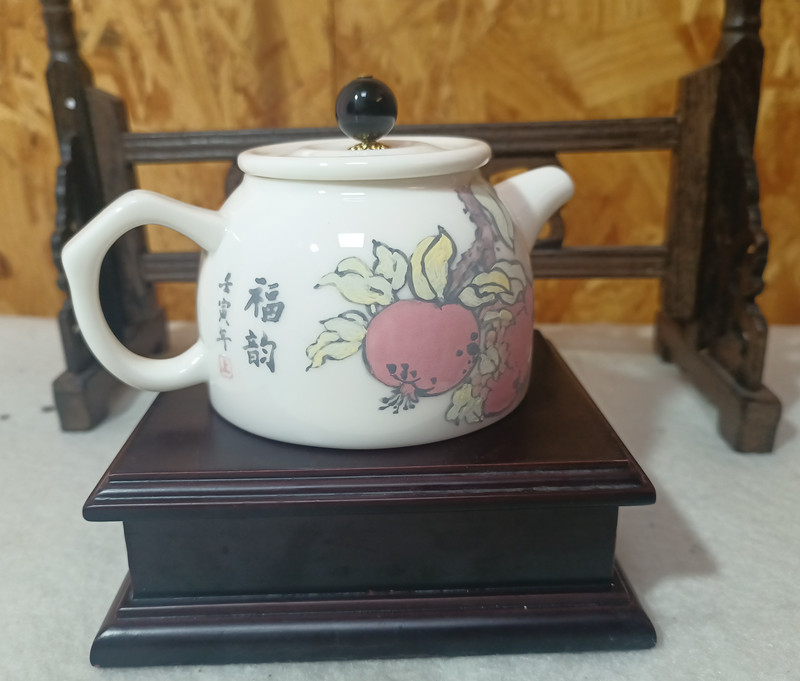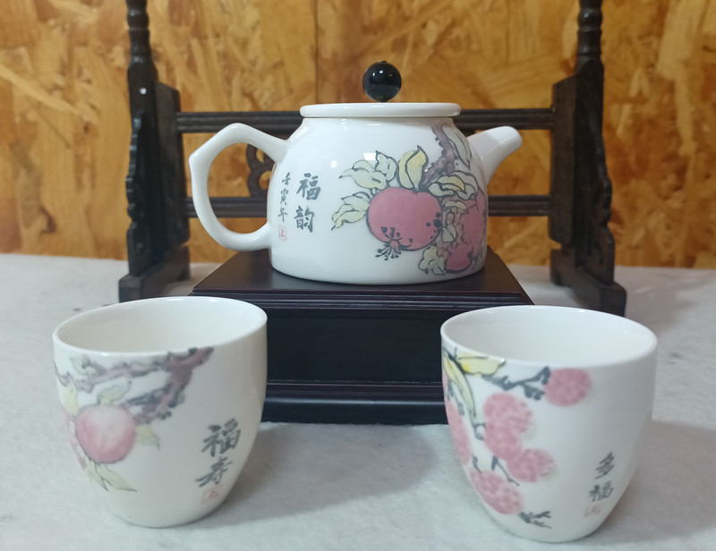 作品以的手绘方式把“福气”绘制到茶具上:将石榴、葫芦、柿子、荔枝等画到茶具上,同时增加了生活气息,希望茶具泡出的茶香散发出“福气”,让你把福带回家,把泉州“福”文化传承下去。