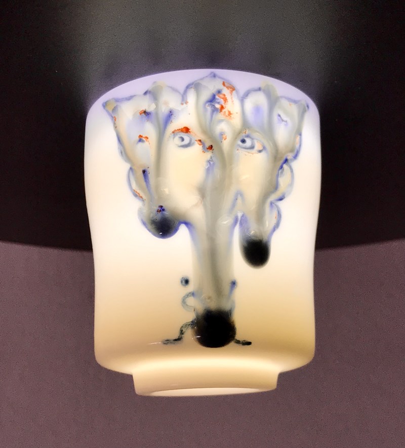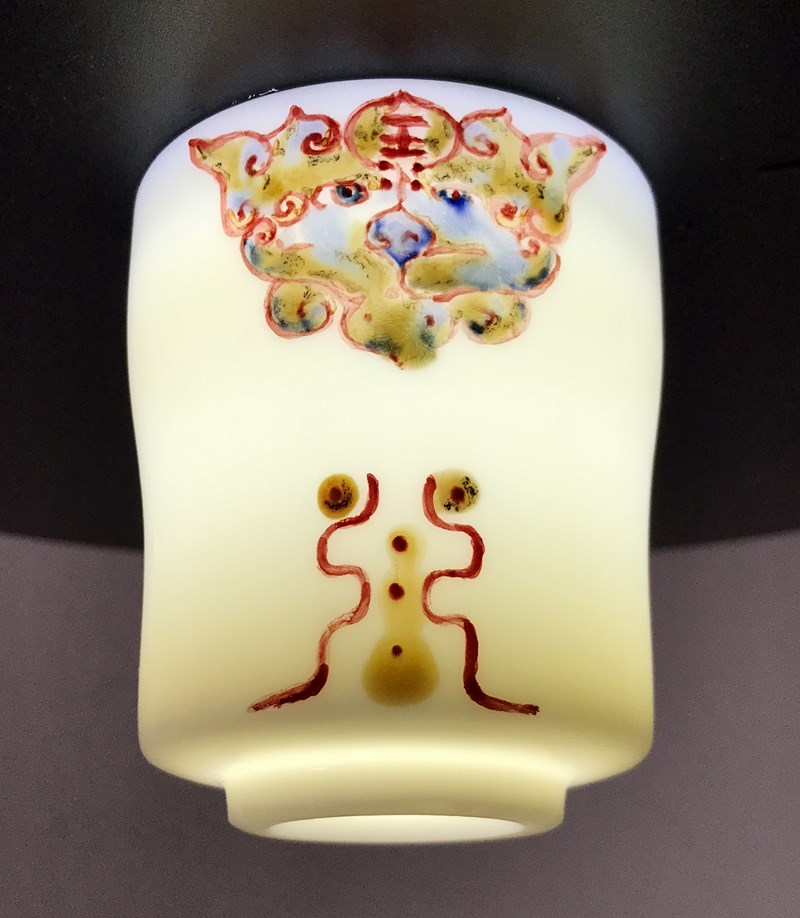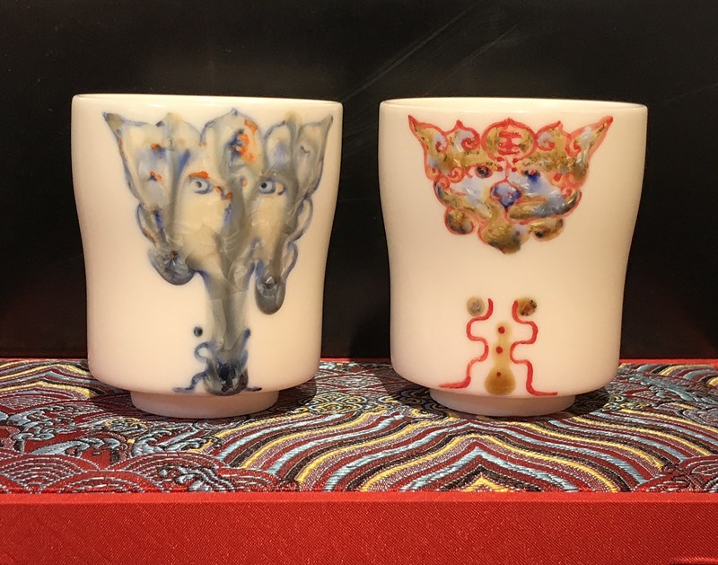 作品以传统“福”文化为主题,运用篆体写法、虎年图腾等设计元素设计制作玉白瓷杯,寓意深刻、富有美感。瓷杯的颜色釉绘画亮点纷呈,构图美观、色彩瑰丽,体现了特色烧制和精彩窑变的高超技艺。
