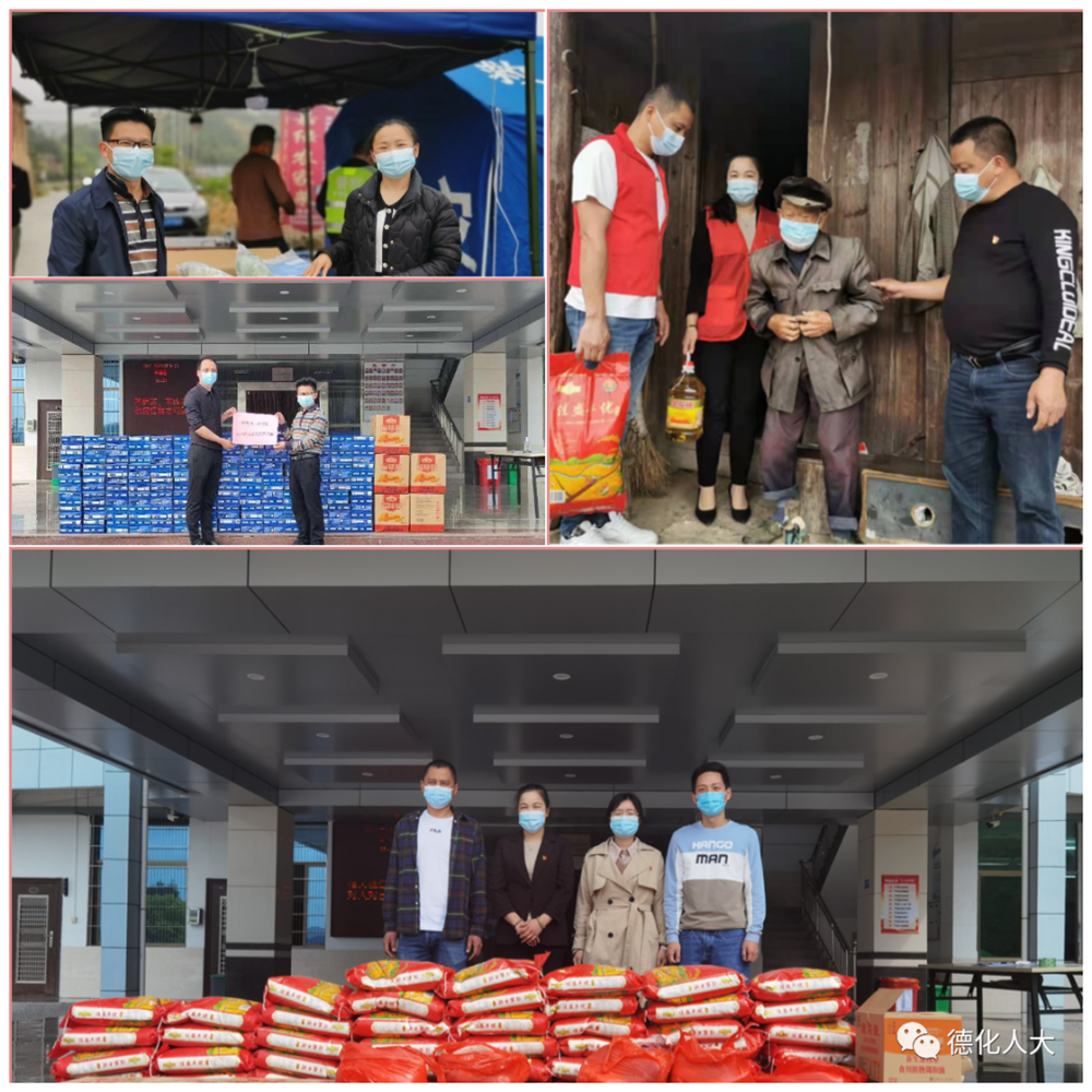 3月20日,德化县人大代表林海华、徐秀虹、彭伟旌等共同向龙门滩镇捐赠油、米、花生牛奶等约15000元的物资,并前往慰问一线疫情防控执勤人员和困难群众;3月21日,县人大代表徐佩玲得知一线防疫物资紧缺,便主动联系供应商,一次性采买N95口罩、防护手套、隔离服等约5000元的防疫物资,紧急送到一线工作人员手里。