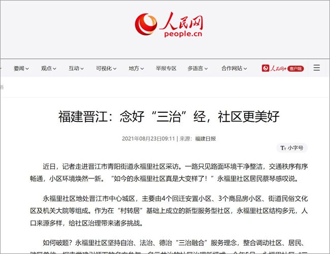 如何破题?永福里社区坚持自治、法治、德治“三治融合”服务理念,整合调动社区、居民、驻区单位,探索党建引领下的多方参与、多元共治的社区治理新模式。今年5月,永福里社区“三治融合”工作法获评福建省第三批优秀社区工作法。