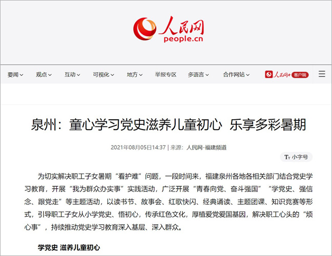 为切实解决职工子女暑期“看护难”问题,一段时间来,福建泉州各地各相关部门结合党史学习教育,开展“我为群众办实事”实践活动,广泛开展“青春向党、奋斗强国”“学党史、强信念、跟党走”等主题活动,以读书节、故事会、红歌快闪、经典诵读、主题团课、知识竞赛等形式,引导职工子女从小学党史、悟初心,传承红色文化,厚植爱党爱国基因,解决职工心头的“烦心事”,持续推动党史学习教育深入基层、深入群众。