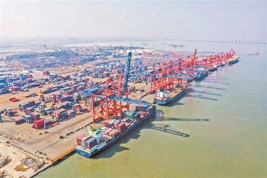 今年一季度,石狮市工业生产保持增长,港口吞吐量增势良好。 (李荣鑫 摄)