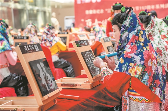 “百女绣百福”惠女影雕体验活动 (欧阳荣华 摄)