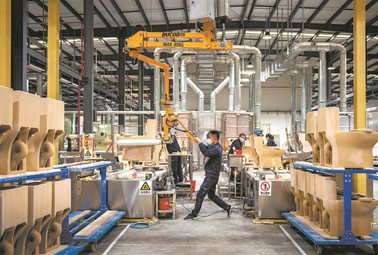 陶瓷行业用电量增幅较大,九牧卫浴生产作业忙。(康庆平 摄)