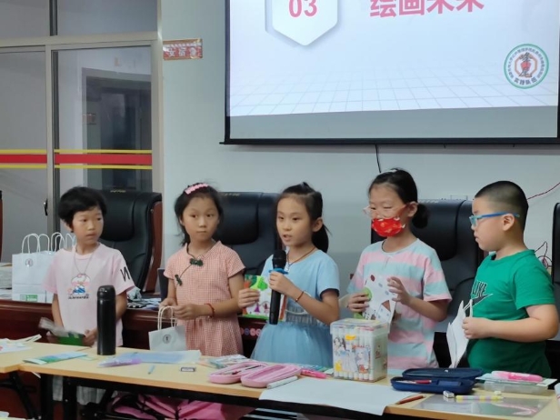 图为“儿童之家”的小朋友们上台介绍自己的作品。